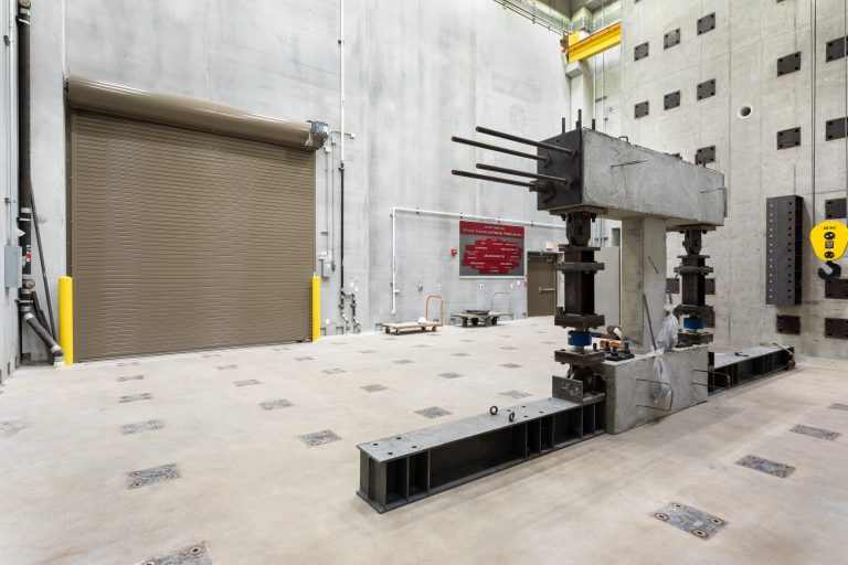 The Jun and Sandy Lee Wisconsin Structures and Materials Testing Laboratory supports instructional, research, and contract testing needs through a wide offering of materials testing, data acquisition, and transducer equipment. Materials testing capabilities of the lab range from uniaxial load frames at 50-lb capacity to a Southwark-Emory one-million-pound capacity machine and torsion up to 10,000 in-lb. The Jun and Sandy Lee addition of the lab houses large-structure testing capabilities with a variety of stand-alone hydraulic actuators and two different strong floor/reaction wall areas.